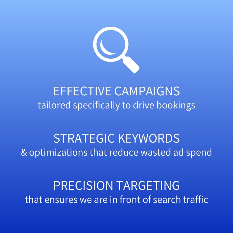 A proven, effective roster of specialized PPC campaigns specifically designed for vacation rental brands.