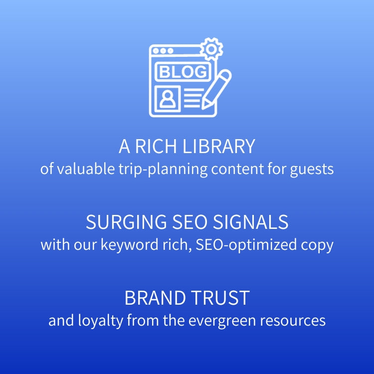 We have some of the best copywriters in the travel industry that consistently produce valuable and entertaining content around your destinations most searched topics and trip-planning ideas.